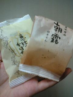 虎屋の羊羹とか、残月(生姜風味のどら焼きの皮みたいな…)とか。