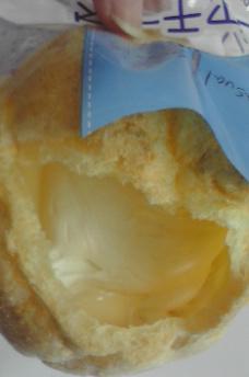 写真でも分かるように、シューの上側がぱかっととれるので、まず上側のシューでクリームをすくって食べ、その後で下側のシューを食べていきました。